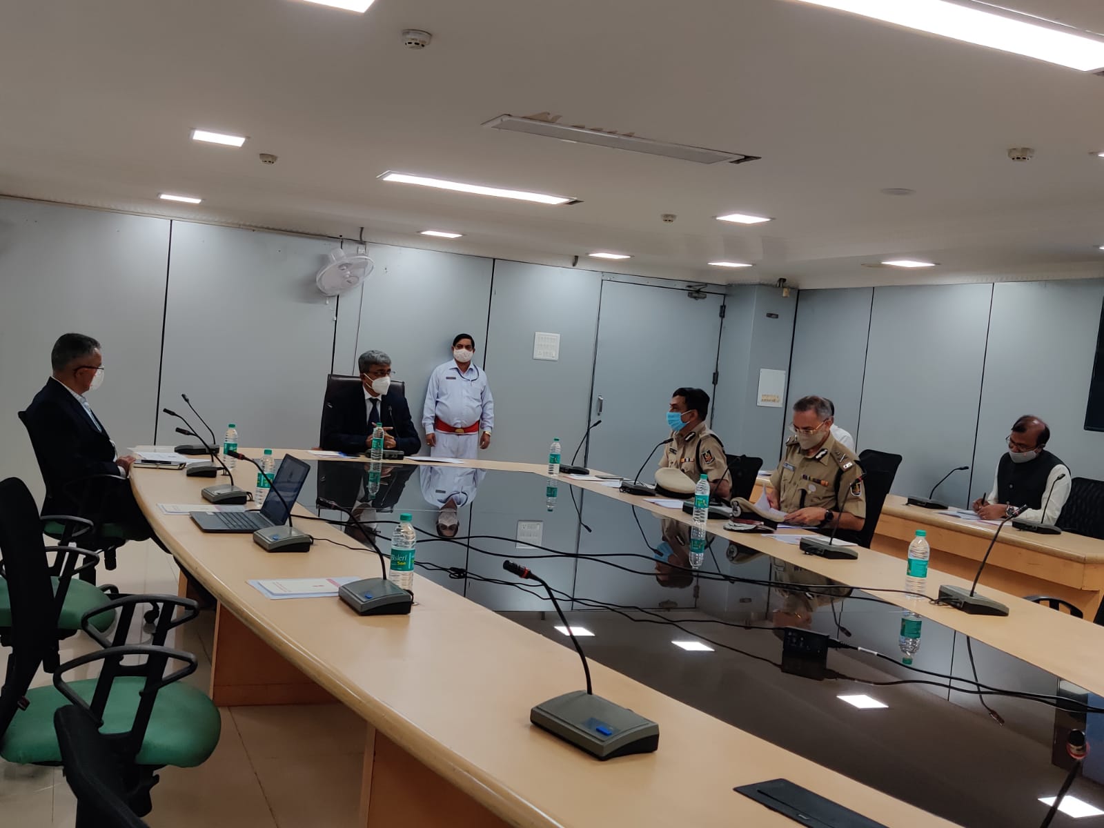 SEC, Odisha reviews law and order and enforcement of Covid guidelines with DG of Police and Home Secretary on 10th Jan 2022 evening.